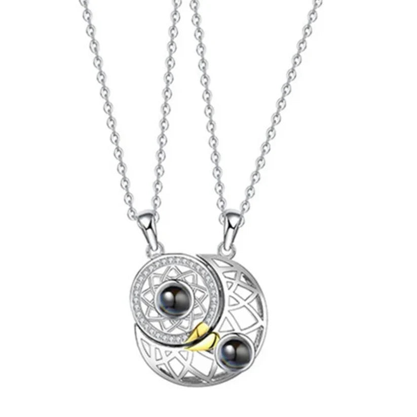 Collar Sol & Luna – Proyección “Te Amo” en 100 Idiomas (Set de 2)